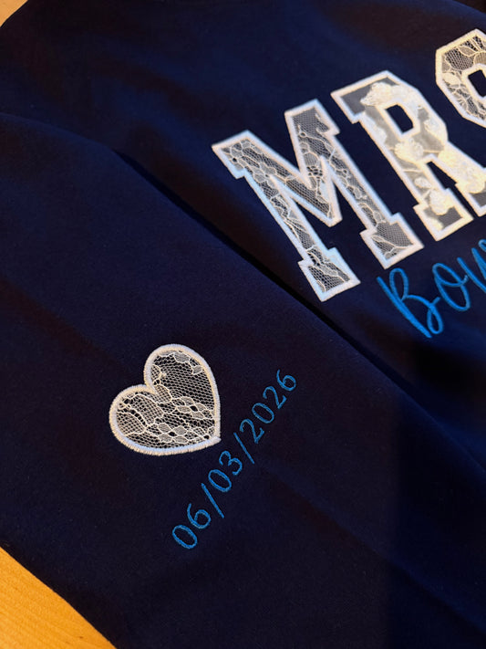 MRS Personalised Appliqué Jumper in Straight Font - Keepsake Embroidered with your fabric